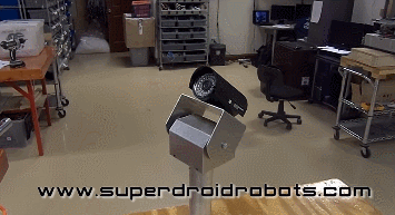 Here is a robotic 360 Pan and 180 Tilt System with a large top platform for mounting your camera that has 360+ degrees of pan and 180+ degrees of tilt capabilities. It is powered by servos which can be controlled using a standard RC or microcontroller.