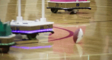 We have seen plenty of robots playing soccer. As it turns out, they can also play American Football. Robotic football began in 2011 as a senior design project for engineering students in Notre Dame. It is now an annual tournament with 6 mid-western universities participating.