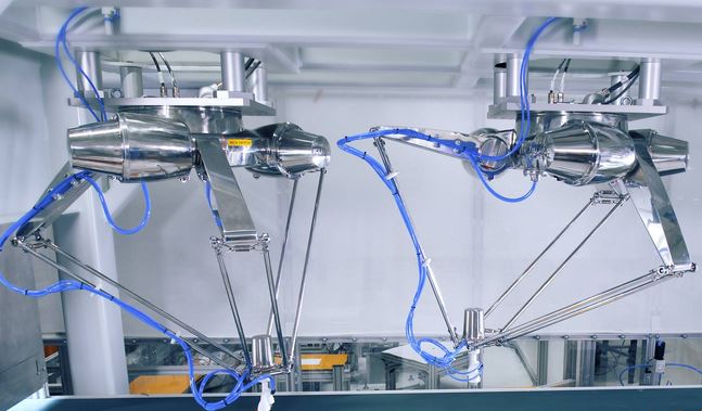 In the past few years, we have covered how businesses are using industrial robots from KUKA and other manufacturers to increase operational efficiency. This robotic spoon picking system was developed by KUKA and MODU. It uses KR DELTA robots to pick and place wrapped and unwrapped spoons into the conveyor pocket that holds food pouches.