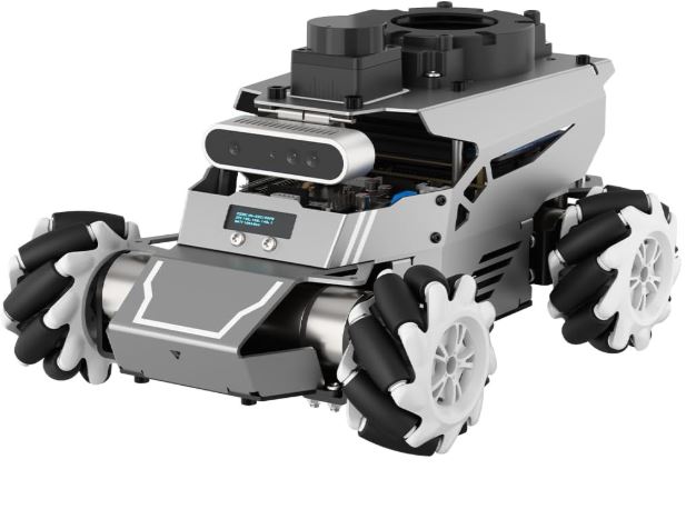Here is another omnidirectional robot for more serious students. The ROSOrin Multimodal AI ROS Robot is compatible with Jetson and Raspberry Pi. It comes with a LiDAR, 6-microphone array, and 3D camera for navigation and voice interaction. It comes with YOLOv11, OpenCV, and MediaPipe support. This robot comes with large language, large speed, and visual language models.