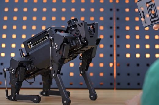 This is the ROSPug: a Python programmable Jetson Nano powered robot dog that can take your coding to the next level. This quadruped robot is ROS compatible. It comes with a HD wide-angle camera with OpenCV for target recognition, line following, and obstacle avoidance. It also has a TOF LiDAR, IMU sensor, and OLED display.