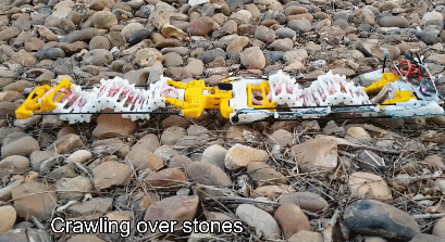 As the above video shows, this robot can pass over cracks up to 25cm and climb obstacles up to 10cm.