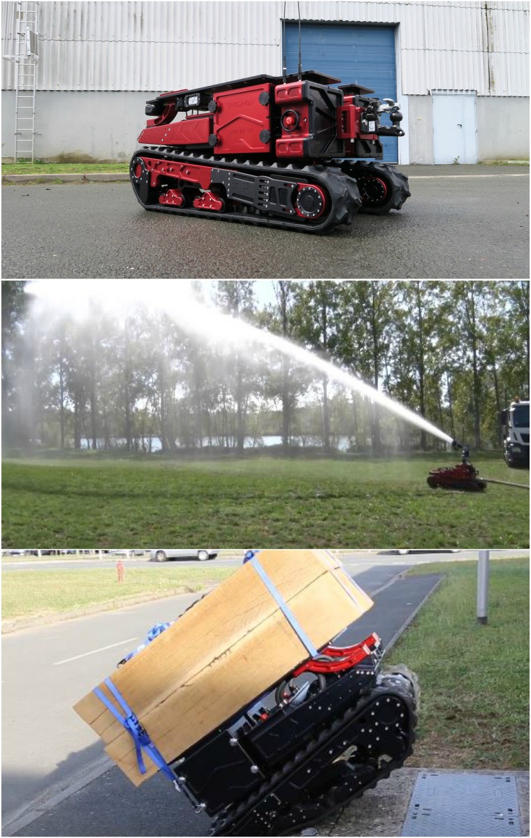 Here is another rugged robot capable of assisting humans in dangerous situations. The SCARAB TX uses sensors and thermal cameras to assist the rescue teams. It can be equipped with water cannon, smoke extraction fan, handling arms, trailer hitch, and other components.