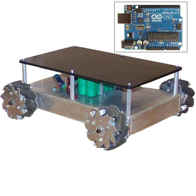 So you are looking for a heavy duty omnidirectional robot for your projects? The SDR Programmable Mecanum Wheel Robot is worth a look. It comes with an Arduino Uno programmable controller, 12V battery, and an IG32 rectangular Mecanum wheel base.