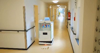 Robots are playing bigger roles in hospitals. They can take on repetitive tasks and free up staff to take on more important tasks. Fraunhofer IPA has developed two solutions for inpatient care as a part of the SeRoDi project. The intelligent care cart can provide laundry and dressing materials. It navigates autonomously but can be summoned via a smartphone.