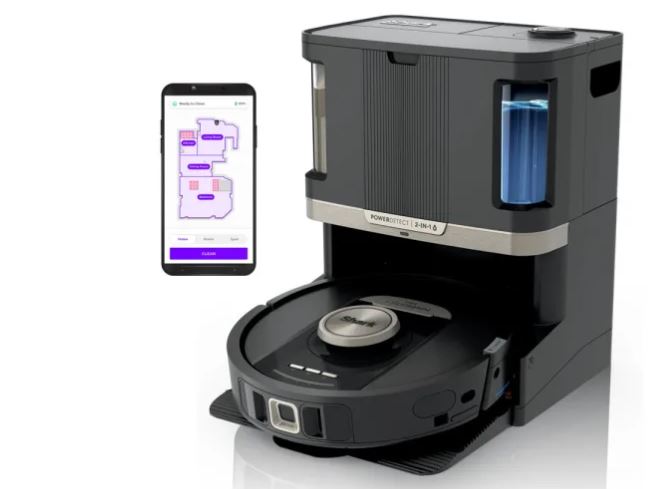 Meet the Shark PowerDetect NeverTouch Pro 2-in-1 Robot Vacuum and Mop: a new robotic vacuum that combines with its base to give up to a month of hands-free cleaning and maintenance. It can refill its own water tank for up to 30 days. It automatically lifts its mopping pad above carpets to prevent wet messes.