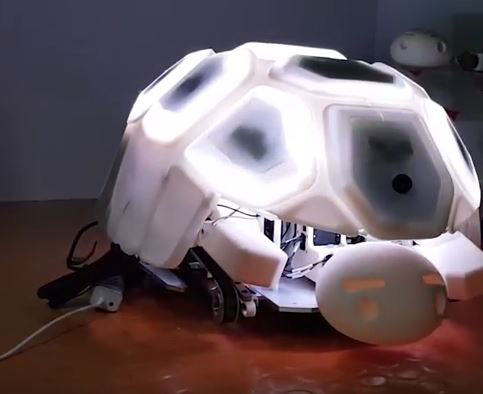 Mistreating robots is not a wise idea. You can always use tools like Shelly to teach kids how to behave around their companion robots. This is a tortoise-like robot with a touch interface that reacts to touch and hits. Shelly is happy when you gently touch its shell but goes hiding in it if hit.