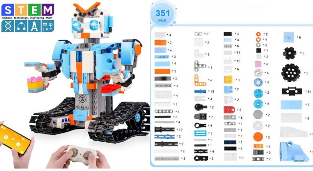 Here is another kit designed to teach your kids about coding and technology. The Sillbird Building Blocks Robot comes with an app that lets you remote control and program it. The head, shoulders, arms, elbows, tracks, and eyebrows can all be rotated.
