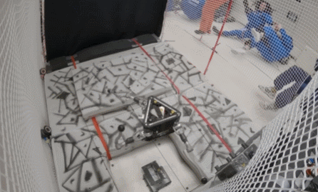 Here is a robot that moves in low gravity environments through hopping motion. As a part of the SpaceHopper project, students at ETH Zurich developed this legged robot for microgravity environments. It has 3 legs with 3 degrees of freedom. This approach can be used to hop to traverse large distances and carry a scientific payload.
