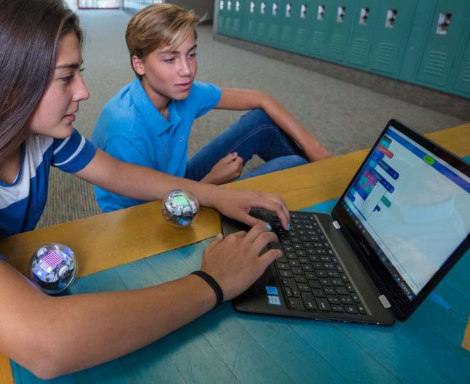 Meet the Sphero BOLT: another educational robotic ball with advanced sensors and a 8×8 LED matrix that displays real-time data. It lets you create games and learn coding by moving blocks on your screen or writing JavaScript code. Bolt has a waterproof shell and Bluetooth module. Thanks to its IR feature, the robot can communicate with other Bolts.