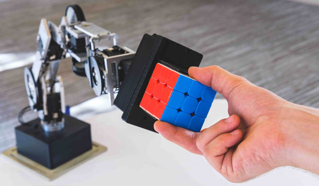 Here is another high-end robotic arm ready for all your projects. The Svenza Revel 6DOF Robotic Arm supports Java, MATLAB, and Python programming. Revel is made of aircraft grade aluminum and weighs less than 3kg. It has a max payload of 1.36kg.