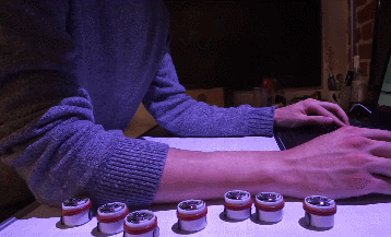 Here is a haptic display that uses small wheeled robots to apply haptic patterns to the user’s hand and other accessible body parts. SwarmHaptics can be used for notifications, directional cues, and remote touch.