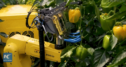 Meet Sweeper: an advanced sweet pepper harvesting robot that can pick fruit in 24 seconds with a success rate of 62%. It uses an advanced vision system to identify items to pick. This Israeli robot will be able to harvest 24 hours a day when fully developed.