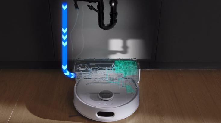 This is the SwitchBot S10: a 6500Pa robot vacuum that doubles as a smart mop to keep your home clean. This dual station robot has a water station that connects to your home’s plumbing system. When the robot is done cleaning, dirty water is replaced with clean water automatically.