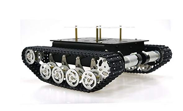 So you would like to build your own robot tank with Raspberry Pi or Arduino? This SZDoit Robot Tank Chassis has you covered. It has metal parts with shock absorption to last you a while. It comes with 9V motors, 2 tracks, and 10 bearing wheels. It has a speed of about 100RPM.