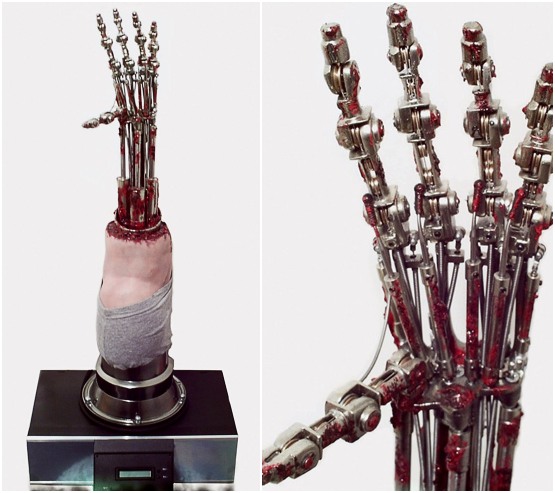 Remember T-800‘s robot arm from the Terminator movie? You can now bring an animatronic version of it home. It is fully articulated and comes with hundreds of handcrafted parts. The piece features motion and sound. Its motion can be programmed from a PC. The motion and sound file can be stored on a SD card.