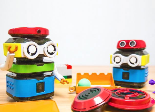 Meet the TacoBot: a cute coding robot with stackable design that provides over 30 activities for your kids. It has a graphical user interface. You can connect it to your smartphone and use it as a Bluetooth speaker. The TacoBot comes with different hats for various activities (sound, tracking, ultrasonic, button).