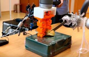 3D-Printed Soft Robotic Hand Cutting a Bread