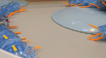 This centipede robot comes with separate body sections and a central motor unit. The motion can be altered by changing the number of body sections.