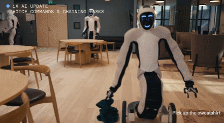 This is EVE by 1X Technologies: an AI humanoid robot measuring 6ft 2 inches tall, weighing 192 pounds. It has a max speed of 9 miles per hour. It can carry up to 33lbs load. It has a run time of up to 6 hours. In this video, you can see a fleet of these robots work together to get things done.