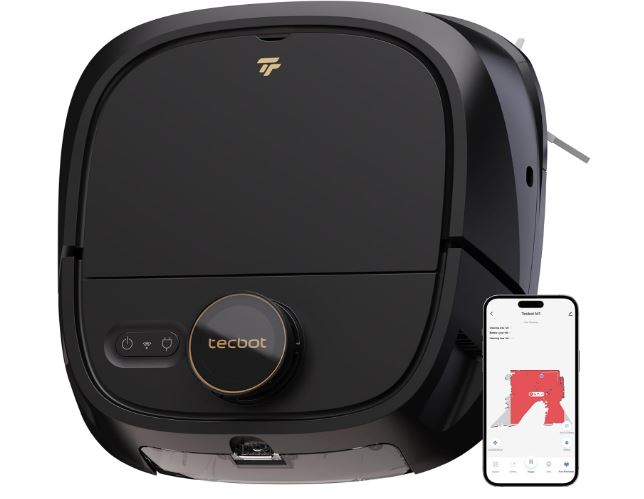 Here is another robot that can keep your home clean of dirt and wet stains. The TECBOT M1 Pro has dual rotating mops that get rid of tough stains. It combines with your phone to let you set up no-go zones and put this robot on a schedule. The battery lasts up to 150 minutes.