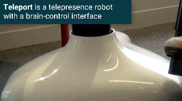 Meet Teleport: a telepresence robot with a brain control interface that allows people with disabilities to attend meetings at remote locations, meet new people, and stay connected from their home. Teleport can also be controlled using a browser or Android phone.
