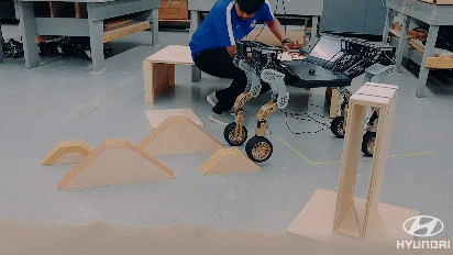 Meet TIGER X1 from Hyundai: a smart autonomous ground robot that can be paired with a UAV to take on challenging tasks. Its leg and wheel system allow 360-degree directional control. The robot can use its walking capability to overcome extreme terrain.