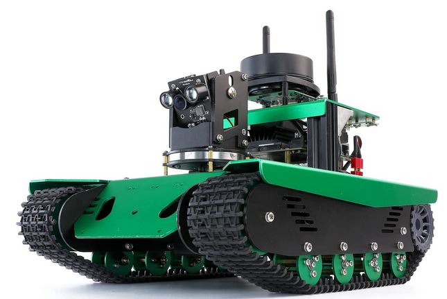 This robot has a Silan A1 LiDAR module. It is ready for autonomous driving, color recognition, face detection, and obstacle avoidance. You can find out more about it here.