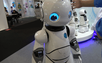 Here is a kid-sized robot that can talk, dance, avoid obstacles, and identify objects. It moves on wheels and makes facial expressions. The robot features smart scene map generation system, deep learning, and digital programming.