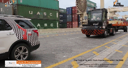 Meet TruGO: a driverless container truck that performs autonomously in a per-defined area. It reduces labor utilization and wage costs for businesses while improving safety. It uses laser scanners and 3D vision for local navigation. This video shows it in action in Dubai: