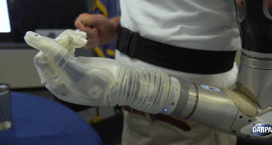 The arm can be controlled using EMG electrodes and foot-mounted inertial measurement sensors. This modular, battery powered arm is now being given to two veterans with amputated arms. The prosthetic Luke arm system has a variety of grips.