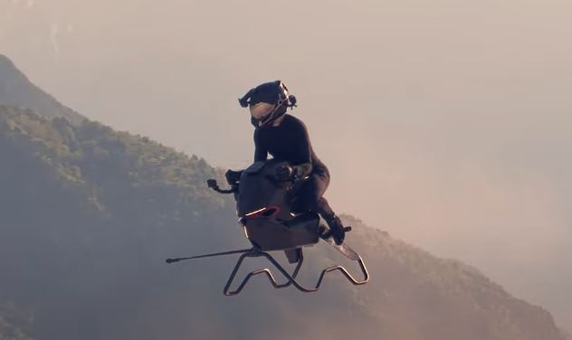 The rider gets a 360-degree view of all the action. It is powered by a jet propulsion system and doesn’t have any spinning propellers. It is 7 times lighter than a regular motorcycle.