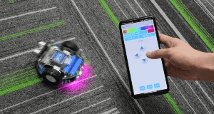 You can use your smartphone to change the lights and control the robot. Drag & drop programming is supported over USB. This kit comes unassembled but it is pretty easy to put together.