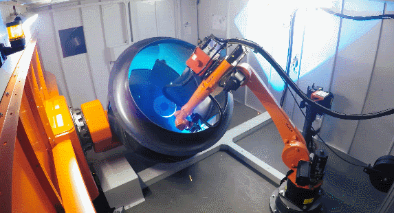 Robot cell welds gigantic fans
