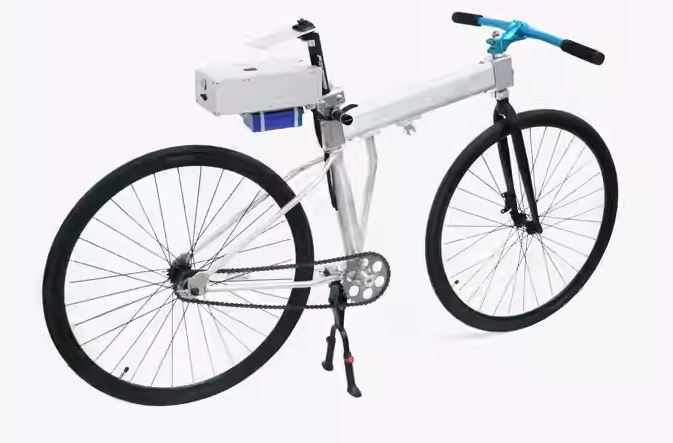 This is the WheelTech Z100 Max: an unmanned bicycle robot that can keep its balance without human intervention. It has a max speed of 1.9m/s. It has a 24-inch diameter wheel. It is powered by a STM32F407VET6 chip. This robot runs on 2 MD36N motors.