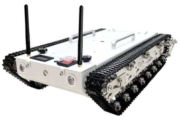 Here is a robot tank that comes with everything you need for programming off-road missions. The WT600S Robot Tank can climb slopes up to 35 degrees. It has max speed of 1m/s. It can overcome obstacles up to 2.8 inches. It has a high carbon steel construction with electrostatic paint.