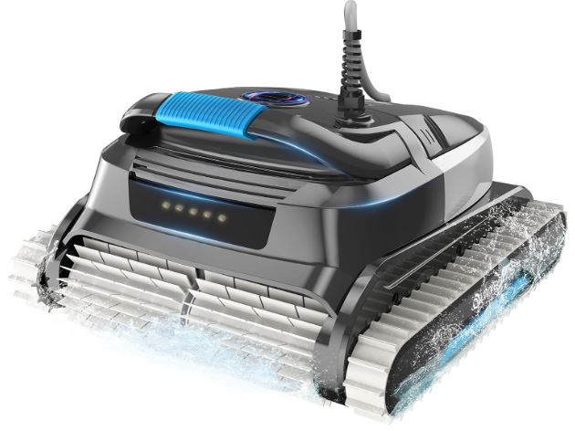 This is the WYBOT WY450: an app connected robotic pool cleaner with up to 200W power that cleans your pool efficiently. This robot has a gyroscope and infrared sensor to get around in your pool. It has multiple modes and paths that you can choose from within the app.