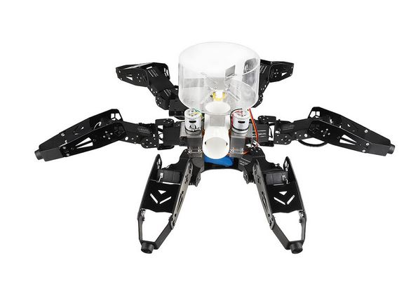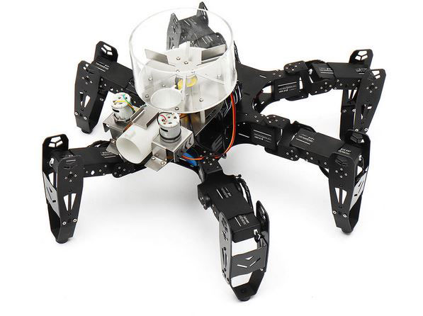 This 6-legged robot runs for 90 minutes on battery. Its body measures 240mm long and 60mm wide. You can find out more about it here.