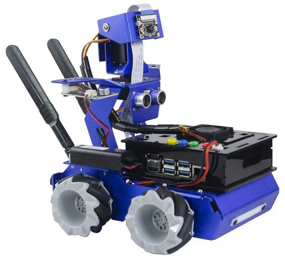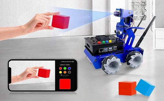 This robot can be programmed to run autonomously, track objects, avoid obstacles, and recognize faces. It also has a voice module to execute your commands.