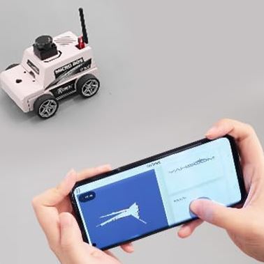 The MicroROS Robot comes with app connectivity. You will be able to view its map and send navigation points to it through the app. It has LiDAR guard, patrol, and tracking capability. It has 3D object recognition, color/face tracking, and MediaPipe pose detection. It can react to your gestures.