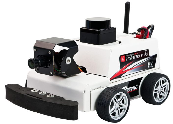 This is the Yahboom MicroROS Pi5: a Raspberry Pi powered robot car ready for Python and C programming. It is based on ROS2-Humble. It has a MS200 LiDAR for indoor and outdoor mapping, path planning, and obstacle avoidance. It has a 2MP camera for AI visual recognition.