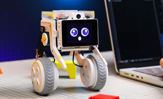 This is the Yahboom Rider Pi: a Python programmable GPT powered 2-wheel robot that is ready for face tracking, 3D object recognition, and gesture control. It can move on flat and inclined surfaces and relies on its IMU to maintain its balance. This robot has an app that gives you easy control. It has WiFi and Bluetooth connectivity.