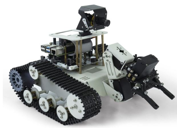 Here is another robot kit that combines with Raspberry Pi to take your electronics and coding skills to the next level. The Yahboom Raspberry Pi 4B Robot Tank is ready for Python and C++ programming. It has an aluminum alloy chassis with a 3DOF arm and 2DOF camera gimbal.