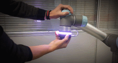 Meet the YouRing: a smart light & sound for Universal Robots. The color can be changed depending on commands. The device has two buttons and also lets you save way points conveniently in freedrive mode.