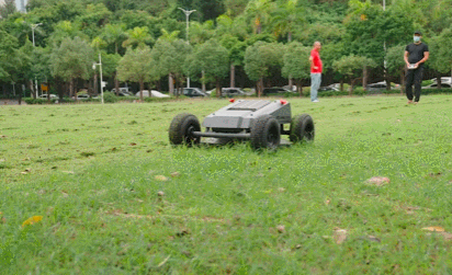 This is the Yuka 10: a four-wheel drive remote control lawn mower that cuts grass, so you don’t have to. It can take on grass, weeds, and bushes. It has a 24Ah battery that lasts for 90 minutes. It has two speed modes (0.45 & 0.9 m/s).